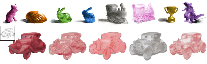 Large diffusion models have made a remarkable leap in synthesizing high-quality artistic images from text descriptions. However, these powerful pre-trained models still lack control over key material appearance properties such as gloss. In this work, we present a threefold contribution: (1) we analyze how gloss is perceived across different artistic styles (i.e., oil painting, watercolor, ink pen, charcoal, and soft crayon); (2) we leverage our findings to create a dataset with 1,336,272 stylized images of many different geometries in all five styles, including automatically computed text descriptions of their appearance (e.g., “A glossy bunny hand painted with an orange soft crayon”); and (3) we train ControlNet to condition Stable Diffusion XL for synthesizing novel painterly depictions of new objects, using simple inputs such as edge maps, hand-drawn sketches, or clip art. Compared to previous approaches, our framework yields more accurate results despite the simplified input, as we show both quantitatively and qualitatively.